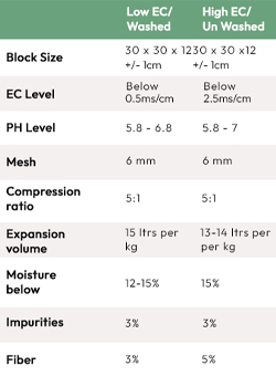 Our nutritionally enriched coco pith combines natural water retention properties with essential nutrients for optimal plant health and growth. Ideal for nurseries, greenhouses, and hydroponic systems, it’s available in sterilized options to maintain high crop standards. 25 kg bags Available in Low EC and High EC pH Level: 5.5 - 6.5 Options available with and without sterilization to support diverse crop needs
